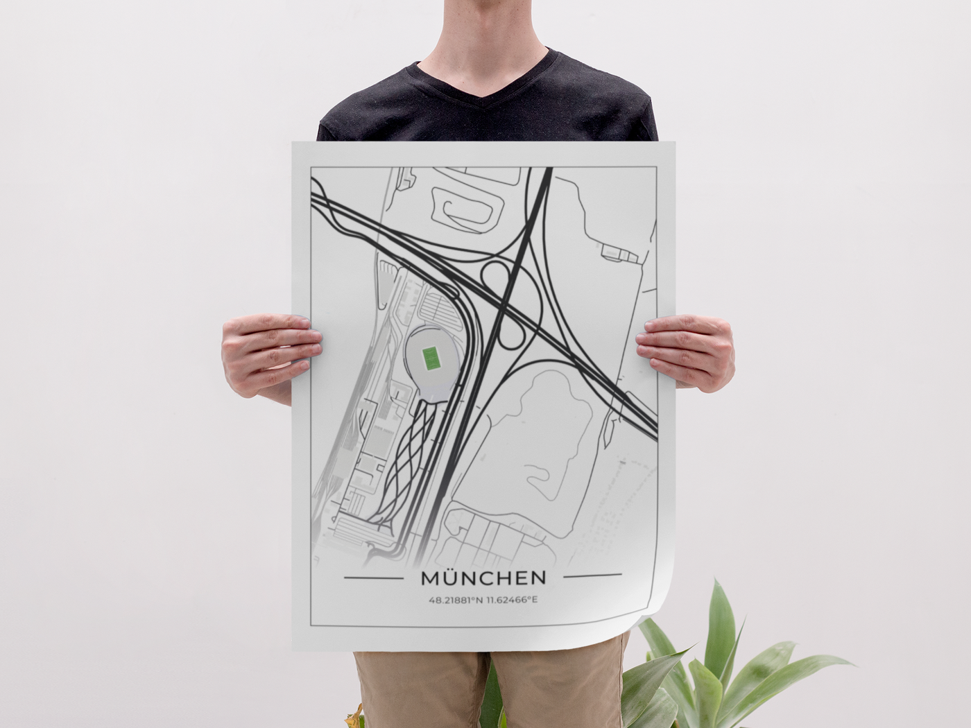Aktuell bieten wir drei unterschiedliche Poster-Arten an. Ihr habt die Wahl zwischen den Stadion Maps, Illustrierten Stadien Postern und Line Art Stadion Prints. Sollte euer Lieblingsstadion nicht zu finden sein, bieten wir die Möglichkeit auf individuelle Anfertigung.